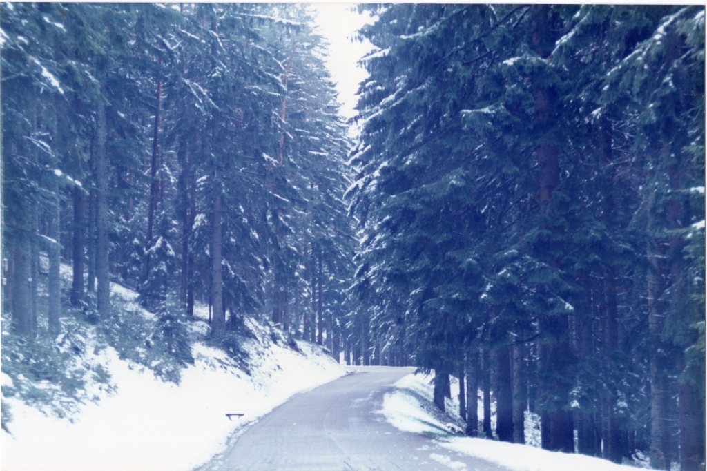 Of course, he gave us the directions in German. John understands some German…some…enough to get us on the correct road…I think. It was a little, windy, one-lane road through the mountains, with snow-covered forests on both sides. After driving for a while, we realized two things: first, we were the only car we had seen for a long time, and second, we had no idea where we were. It was very beautiful, with snow drifting down from the tree branches, but part of my mind was thinking of all those stories that ended with the words, “And they were never seen again.” Maybe not the best type of fantasy story to land in.