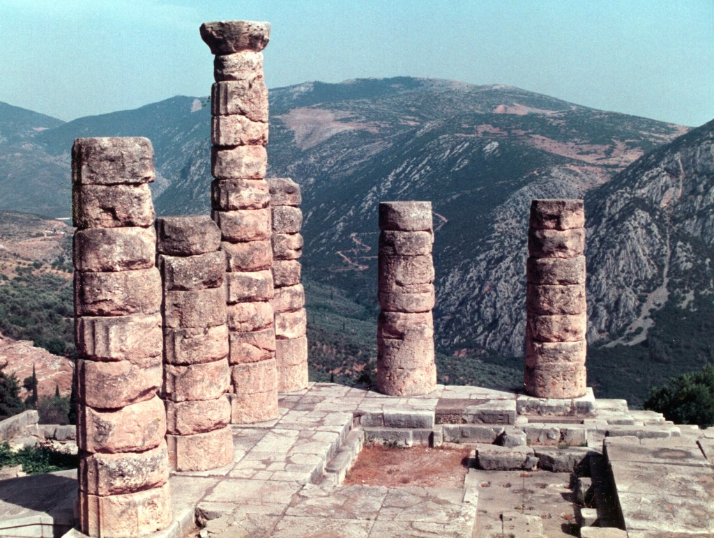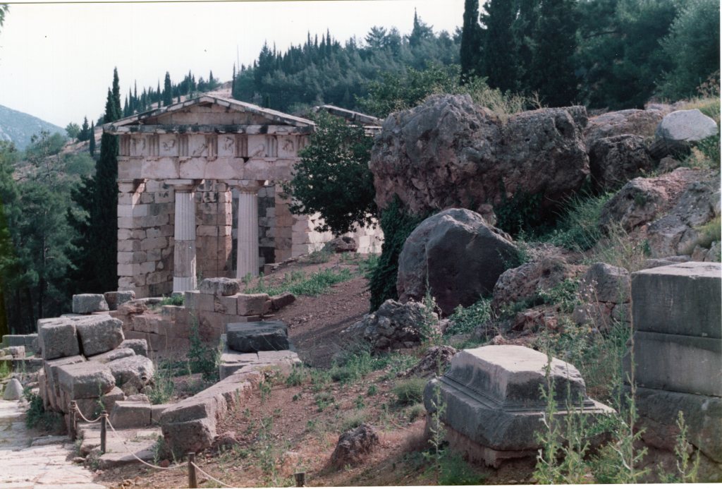 My beloved co-author and I visited Delphi on a beautiful June day in 1992. The weather was perfect, and the archaeological complex was fascinating. After 30 years, my memory of our visit has faded a bit, but I recall that much of the site was situated along a slope and that we climbed up an ancient road as we passed the remains of structures and monuments.