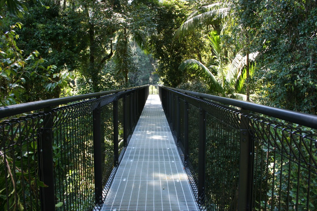 A trail that winds beneath a tropical forest is great, but one near the level of the treetops is extraordinary. There are many fine “skywalks” in the world, but one of the most memorable for me is the Skywalk at Tamborine Mountain in Australia.